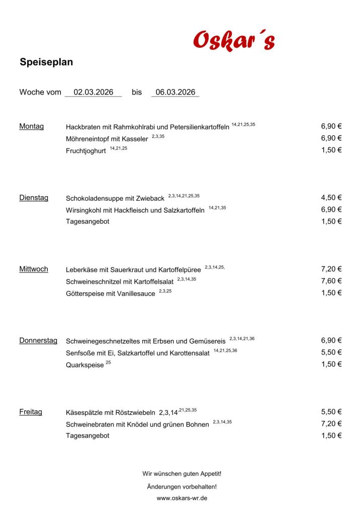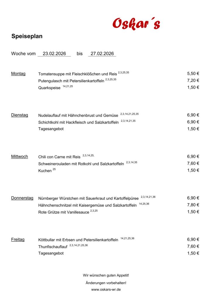 Speiseplan 23.02.2026 – 06.03.2026